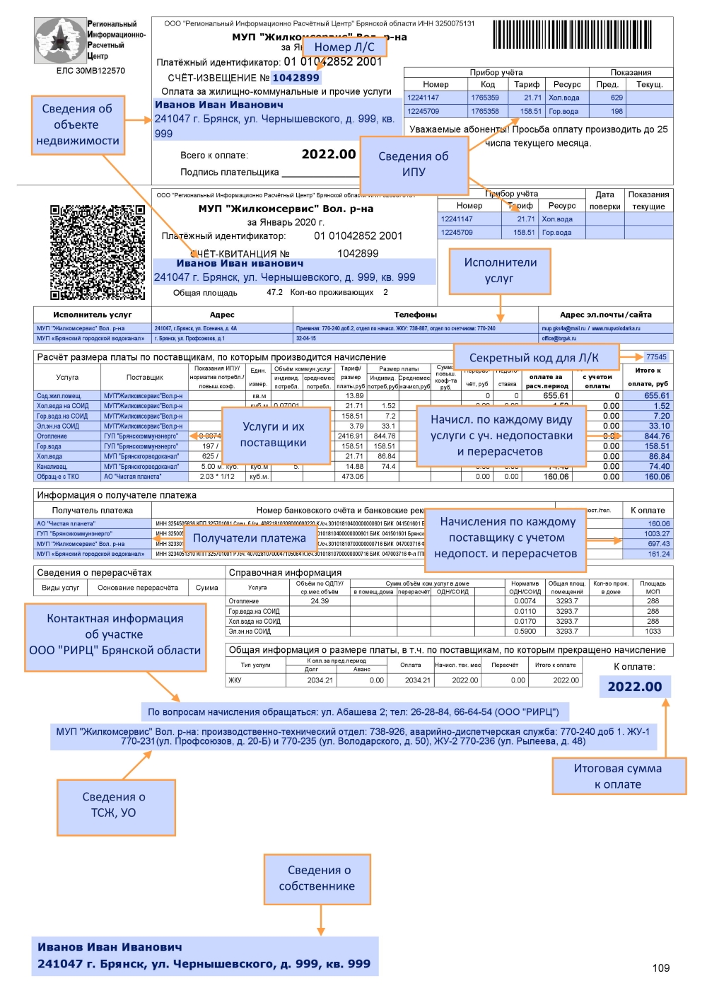 При оплате ЖКУ в кассах ООО «РИРЦ» Брянской области необходимо счет-извещение или ЕПД. В шапке ЕПД есть штрихкод для считывания о платеже. Комиссия за оплату составит 0% от суммы платежа.