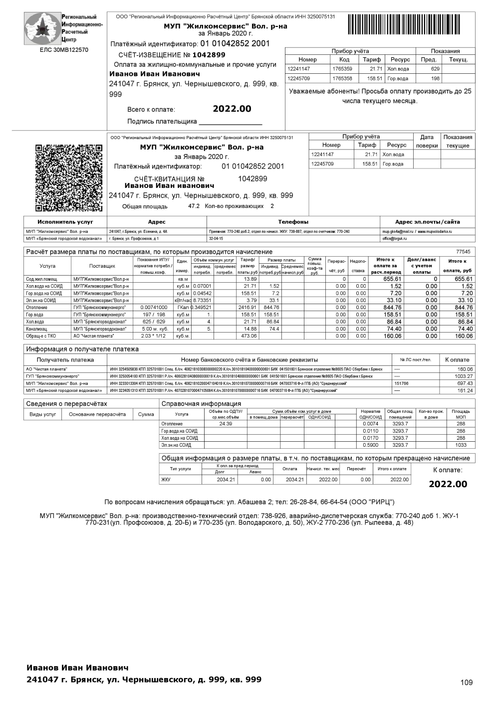 Единый платежный документ рассылается почтой раз в месяц. Так же ЕПД в электронной форме можно получить и распечатать через личный кабинет абонента на официальном сайте ООО "РИРЦ" Брянской области.